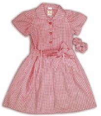 In summer, girls may wear red and white checked or striped dresses.