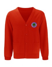 Girls wear grey skirts or pinafores, white polo shirt and red crew neck sweatshirt or red cardigan.