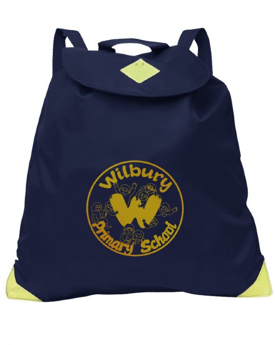 Infant Backpack in a strong water resistant material, features include secure easy to open velcro fasting, strong drawcord, safety reflectors, internal pocket, name card holder on the back and adjustable back straps.