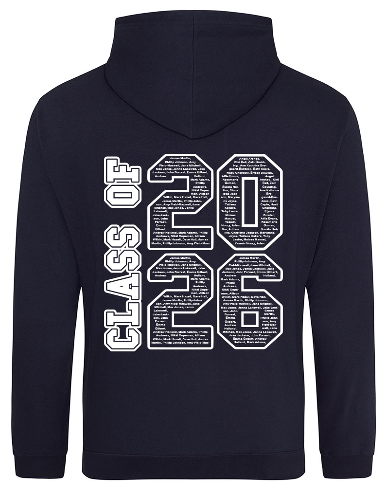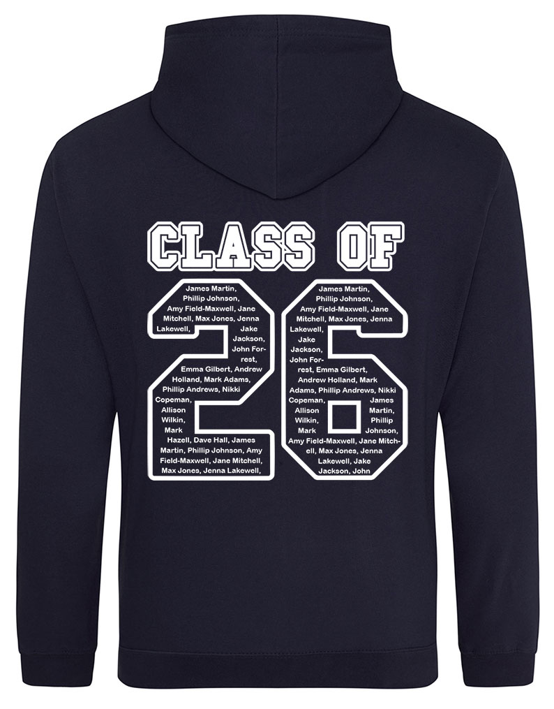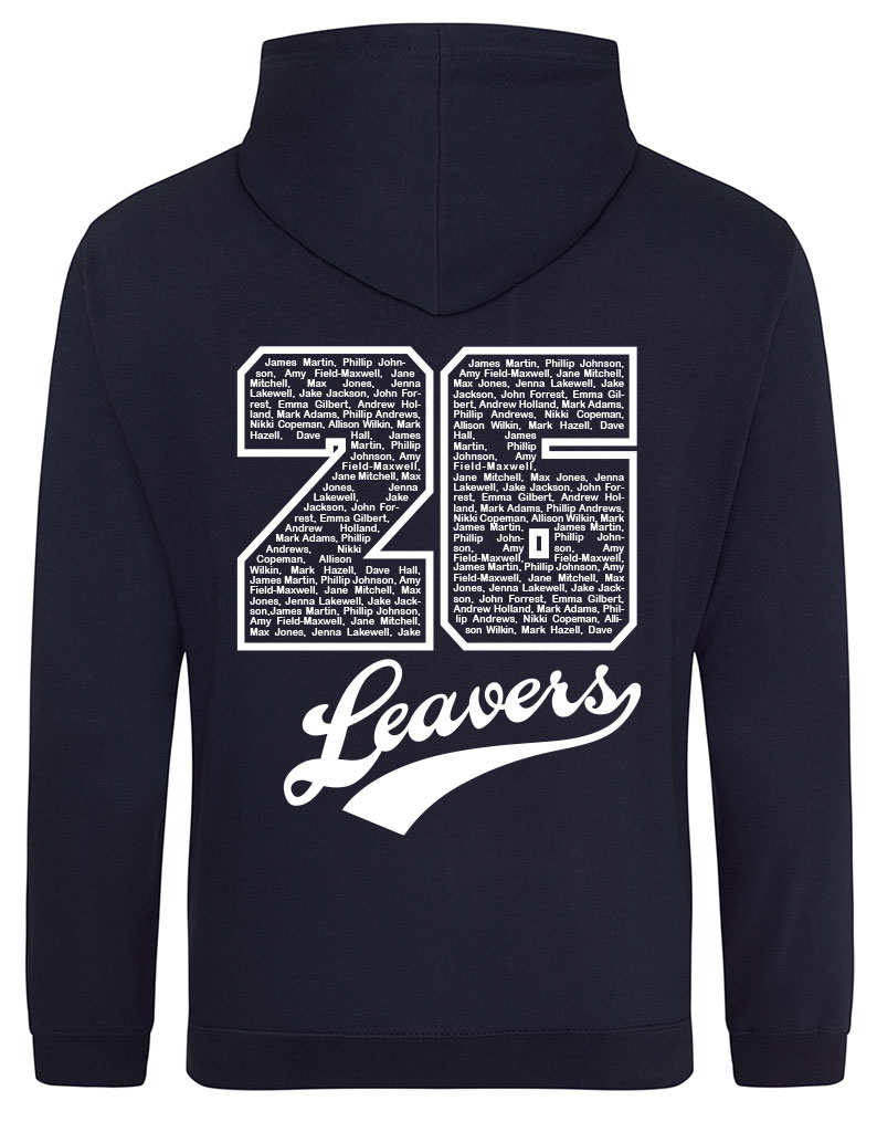 Please insert the names to be included within the back design. Names must be supplied with each child's name separated by a comma.